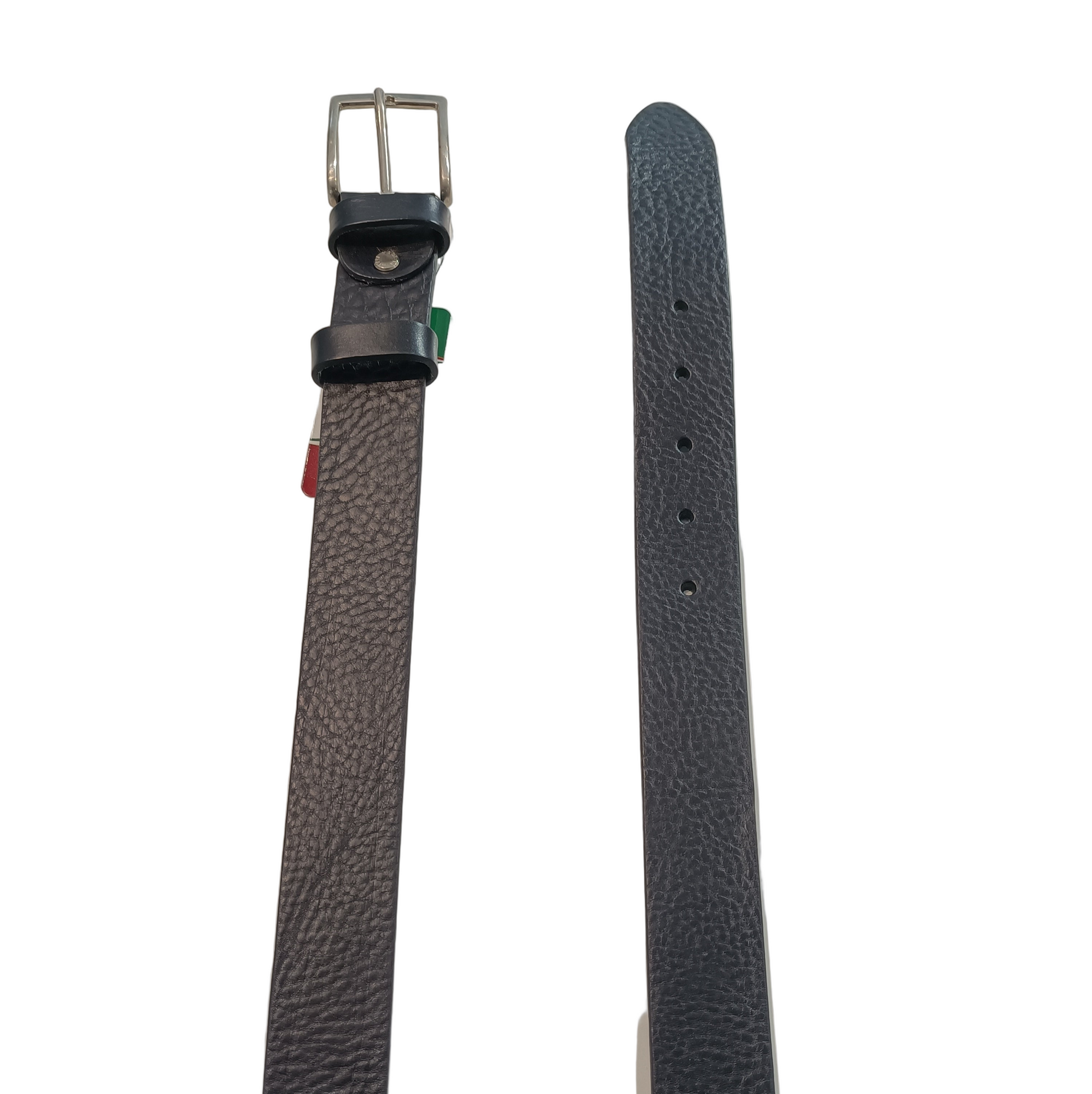 Cintura classica da uomo in pelle martellata scura blu, con fibbia ad ardiglione. Ideale per completi formali.