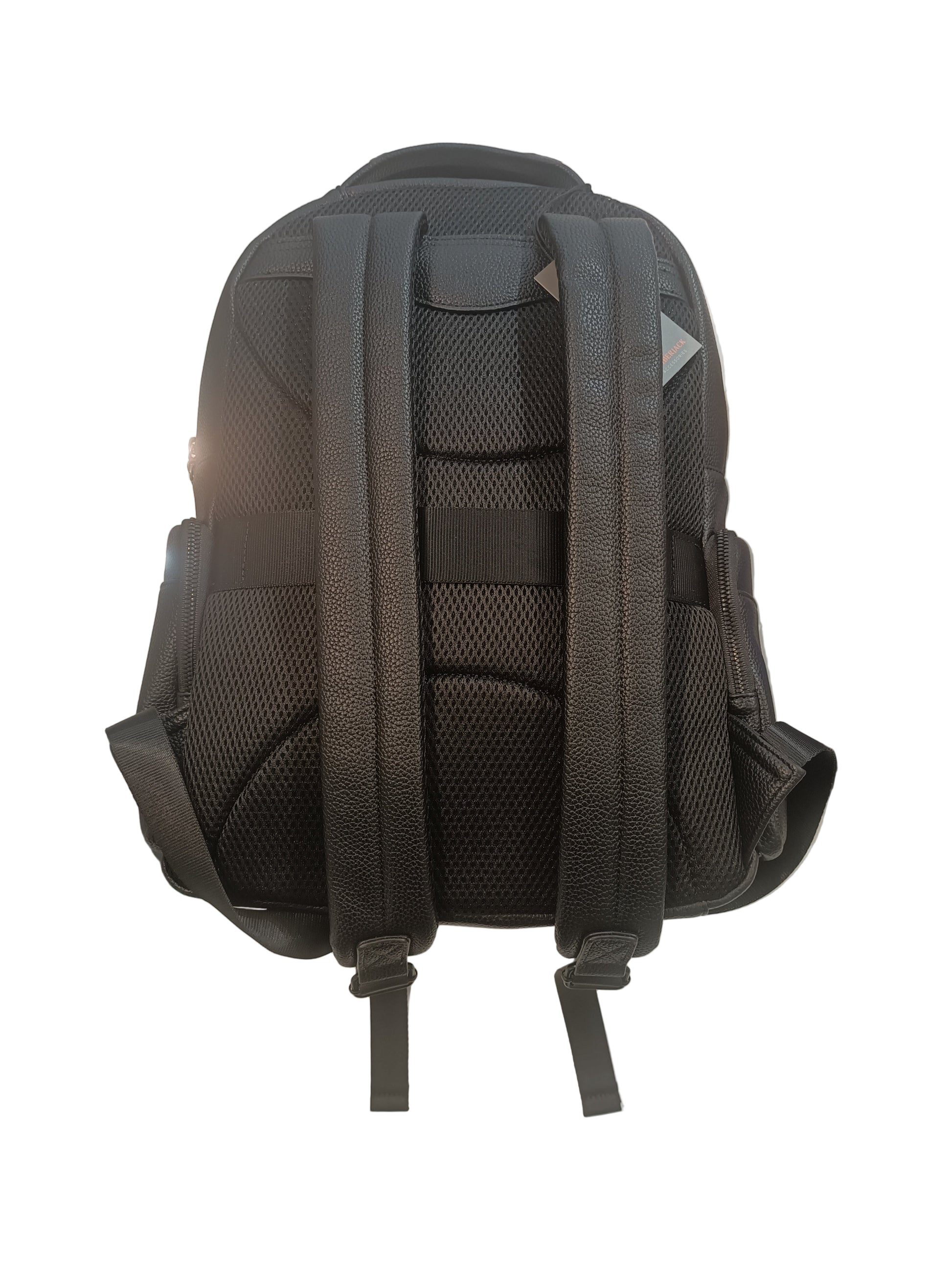 Questo zaino si distingue per il design strutturato e l'elevata capacità. Perfetto per chi viaggia o per l'ambiente lavorativo, è realizzato in ecopelle nera con finitura martellata. L'organizzazione è eccellente: presenta un'apertura principale centrale con zip, accompagnata da due tasche frontali esterne con zip per un accesso rapido e due pratiche tasche laterali.