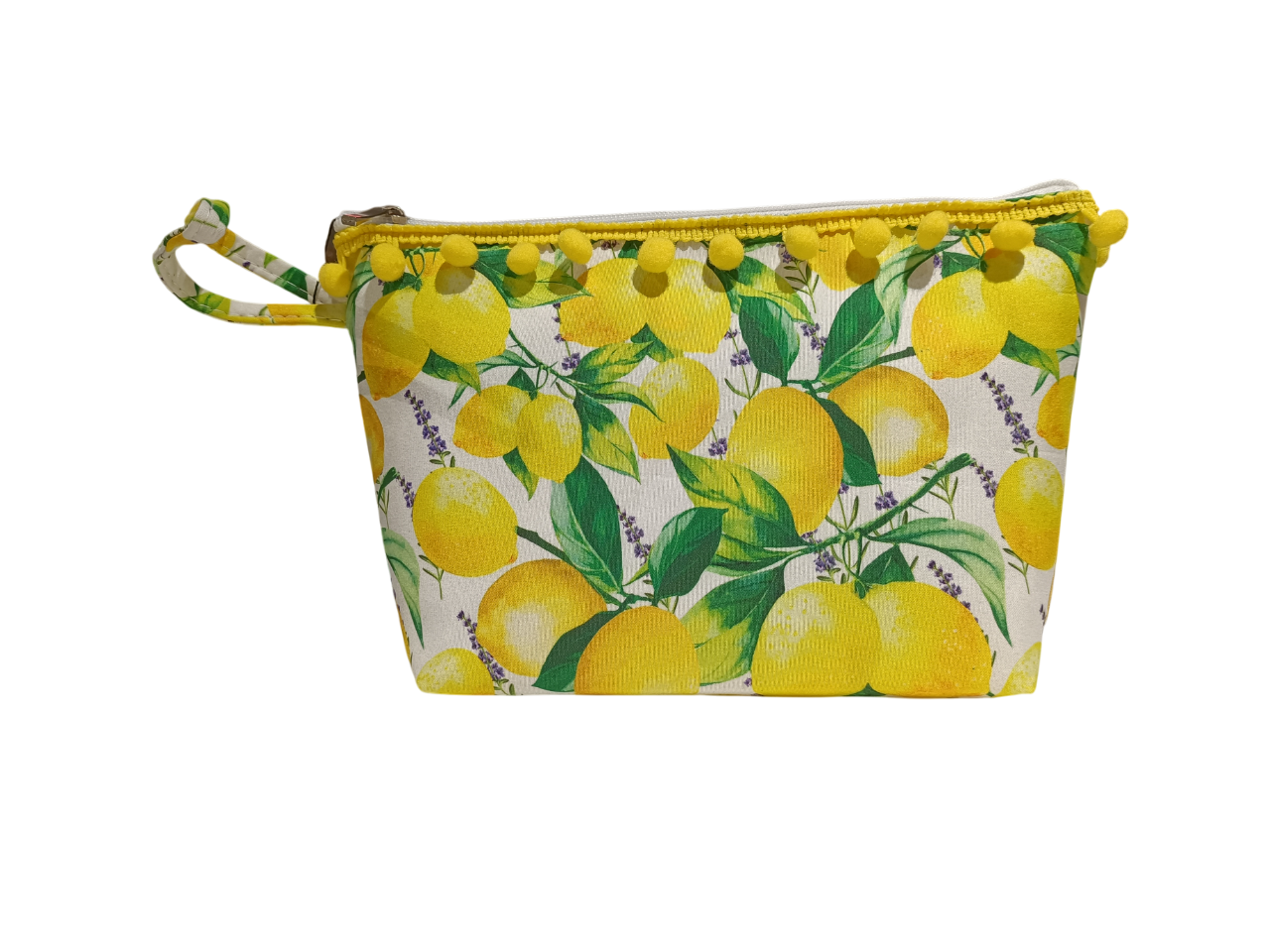 Fresco, vivace e irresistibilmente estivo, questo beauty case è decorato con una colorata fantasia di limoni, perfetta per portare un tocco di allegria ovunque tu vada.
