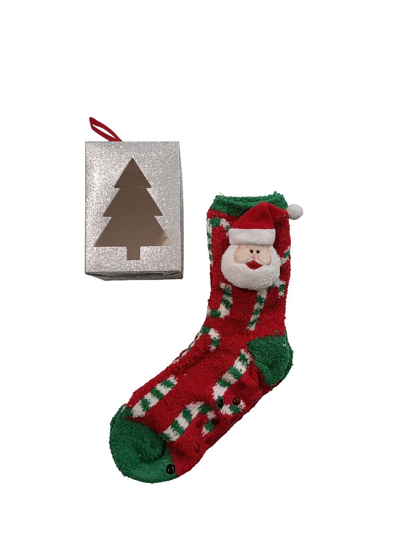 Eleva il comfort domestico con i nostri calzini antiscivolo di alta qualità. Dotati di suola antiscivolo affidabile, offrono stabilità e sicurezza su ogni superficie. Il design distintivo, arricchito da un morbido peluche a forma del viso di babbo natale, unisce funzionalità e un tocco di giocosa eleganza. Ideali per relax e stile.