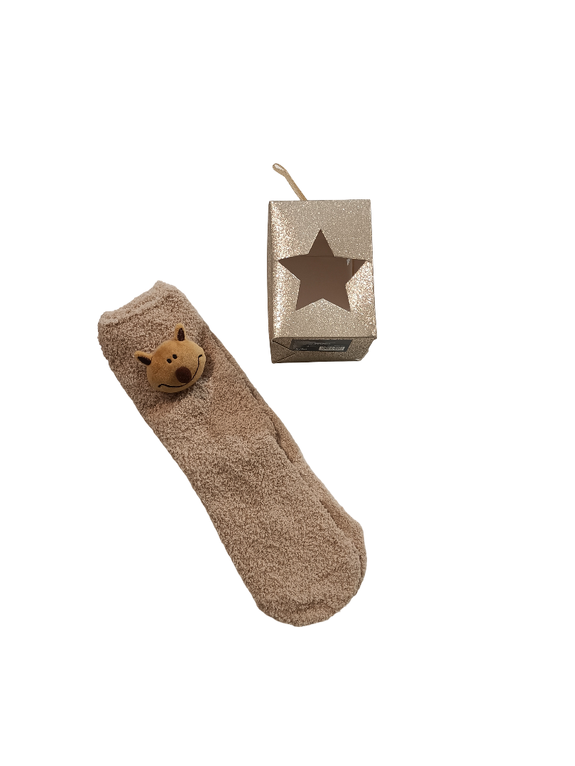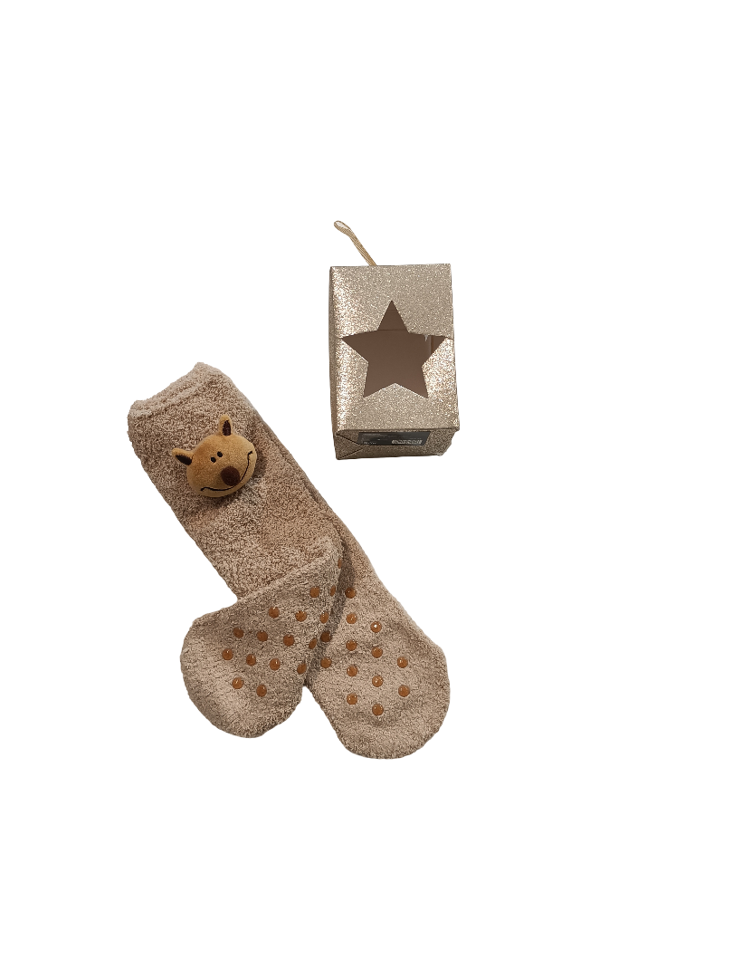 Eleva il comfort domestico con i nostri calzini antiscivolo di alta qualità. Dotati di suola antiscivolo affidabile, offrono stabilità e sicurezza su ogni superficie. Il design distintivo, arricchito da un morbido peluche a forma del viso di un'orso, unisce funzionalità e un tocco di giocosa eleganza. Ideali per relax e stile.