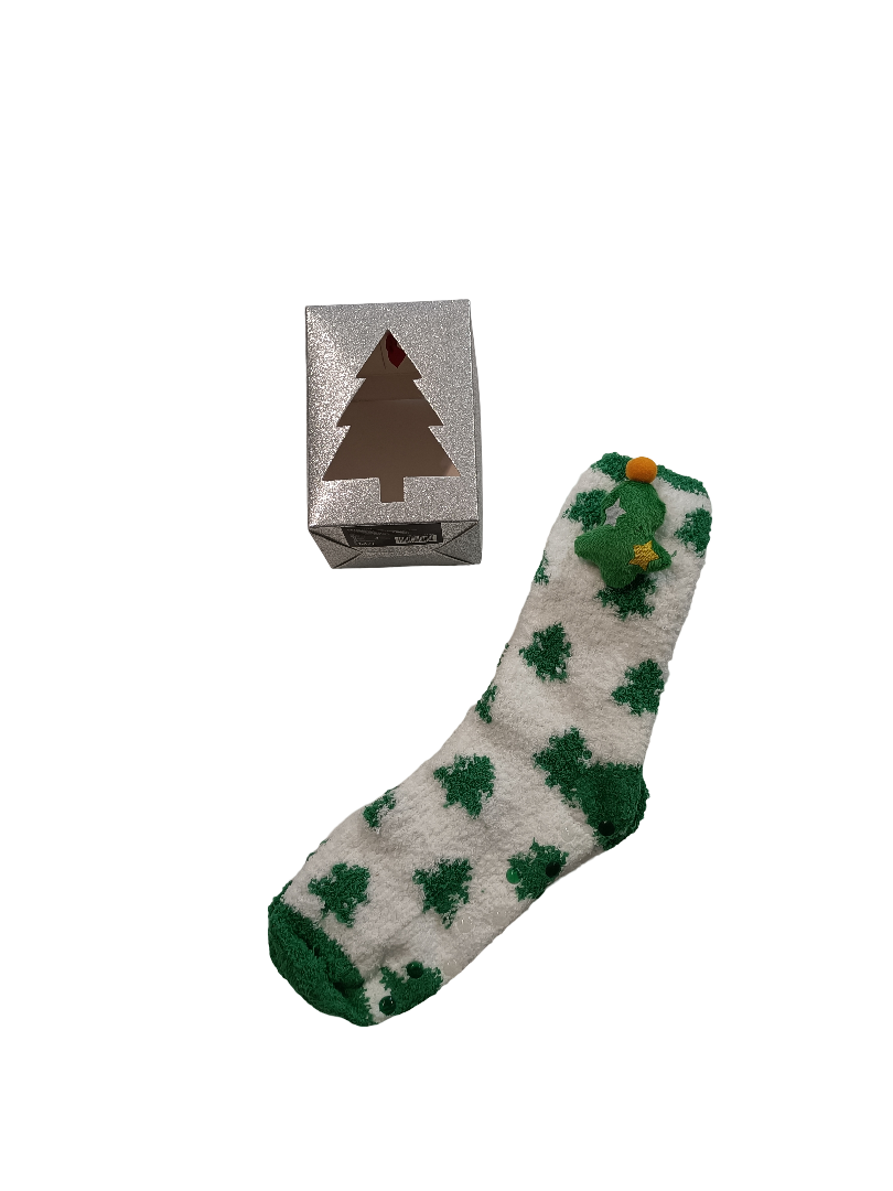 Eleva il comfort domestico con i nostri calzini antiscivolo di alta qualità. Dotati di suola antiscivolo affidabile, offrono stabilità e sicurezza su ogni superficie. Il design distintivo, arricchito da un morbido peluche a forma di albero di natale, unisce funzionalità e un tocco di giocosa eleganza. Ideali per relax e stile.