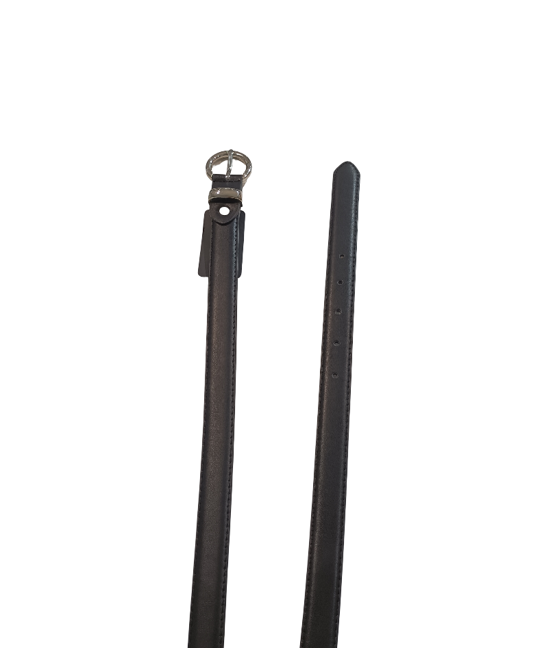 Accessorio essenziale in ecopelle nera, perfetto per ogni outfit. Caratterizzata da una fibbia argentata e un design elegante e sottile. La lunghezza di 110 cm garantisce una vestibilità versatile. Un classico indispensabile per definire il tuo look.