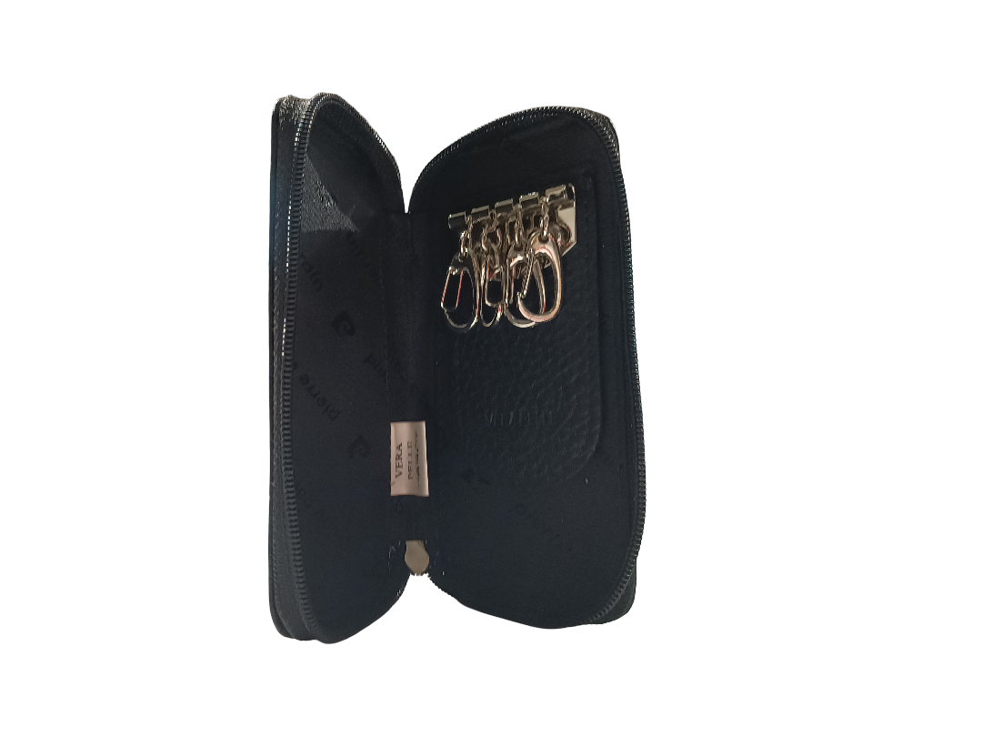 Realizzato in morbida pelle di alta qualità, questo portachiavi con chiusura offre uno stile sobrio e raffinato. All’interno, una serie di ganci metallici permette di organizzare le chiavi in modo pratico, mentre la chiusura a pressione mantiene tutto ben protetto. Compagno ideale per chi ama ordine e stile nei dettagli quotidiani.