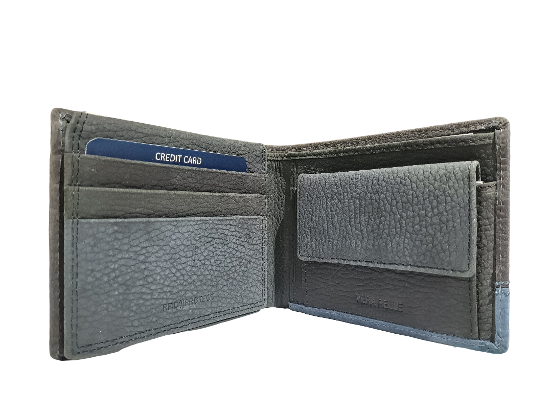 Raffinato portafoglio bicolore in vera pelle, dove il classico marrone si incontra con il celeste per un contrasto moderno e distintivo. L’interno è progettato per offrire massima funzionalità: ampio scomparto per banconote, pratici spazi per carte e tessere, e una tasca portamonete con chiusura. Un accessorio elegante e originale per l’uomo che ama distinguersi.