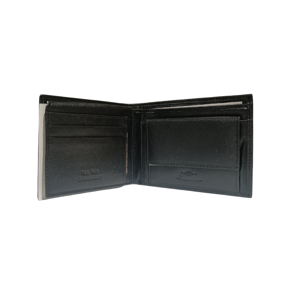Elegante e pratico, questo portafoglio nero è pensato per chi desidera un accessorio funzionale e raffinato. Realizzato in materiale resistente, offre ampi scomparti per banconote, spazi dedicati per carte e documenti, e un portamonete con chiusura sicura per custodire al meglio monete e piccoli oggetti. Il design compatto e il colore classico lo rendono perfetto per ogni occasione, dal lavoro al tempo libero.