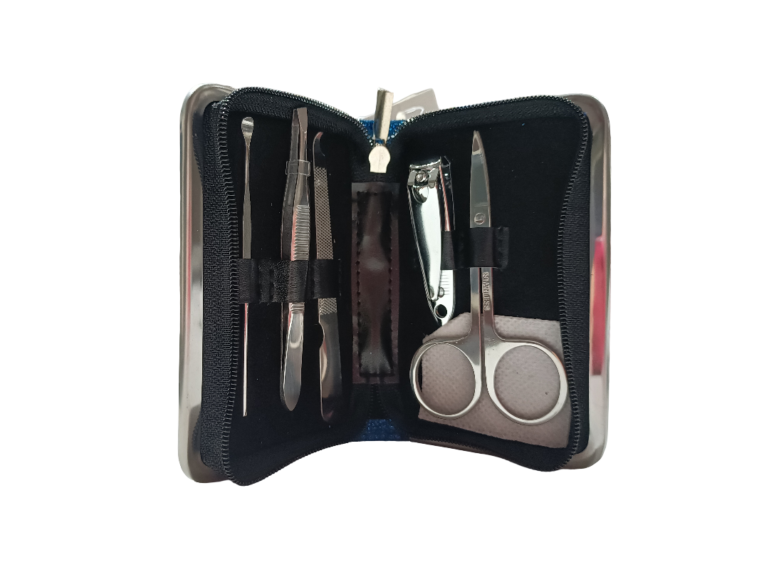 Elegante set manicure firmato Emanuela Biffoli, racchiuso in una pochette blu glitterata con chiusura a zip per proteggere al meglio gli strumenti. Al suo interno, tutti gli accessori indispensabili per una manicure curata e perfetta, combinando funzionalità e stile in un design luminoso e raffinato. Perfetto da portare sempre con sé, per mani impeccabili in ogni occasione.