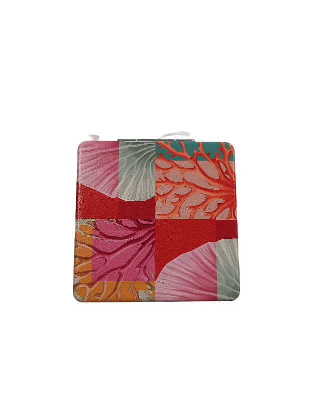 Eleganza tascabile con vibrante stampa ispirata al mare. Doppio specchio (standard e ingranditore) per una precisione impeccabile ovunque tu sia. Stile e funzionalità a portata di mano.