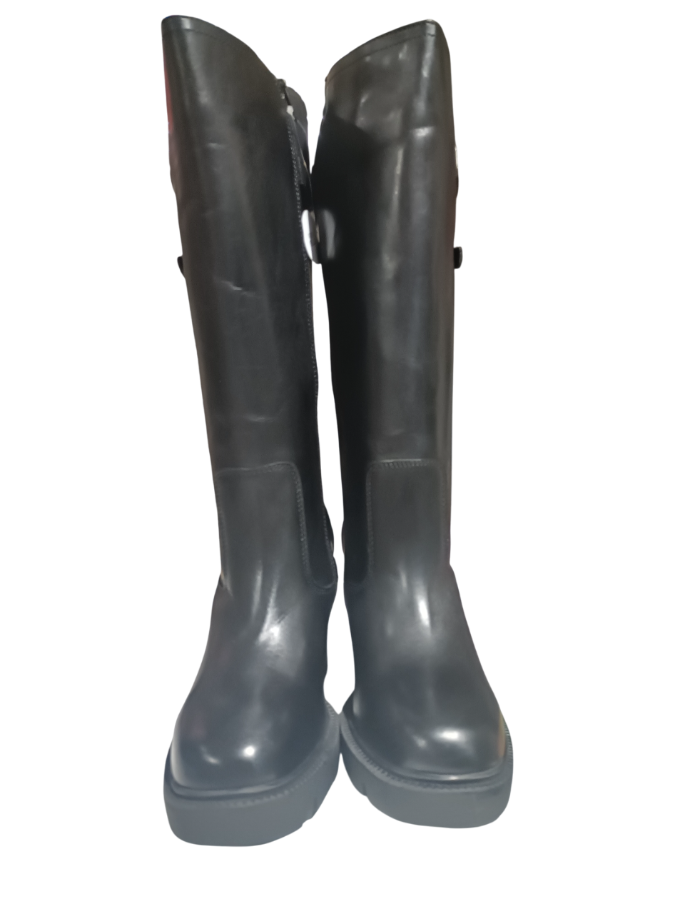 Questo stivale con tacco in pelle unisce linee pulite e materiali di qualità in un design intramontabile. La pelle liscia e strutturata valorizza la silhouette della gamba, mentre il tacco slancia la figura con naturalezza, offrendo comfort e stabilità.