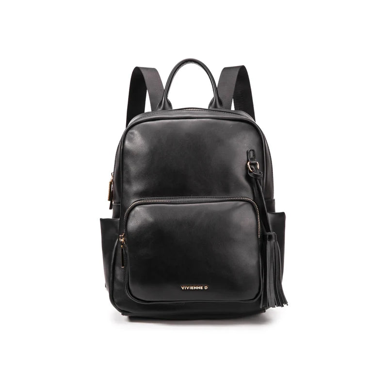 Zaino in ecopelle liscia, con due tasche interne di cui una con zip, logo VIVIENNE D finitura dorata